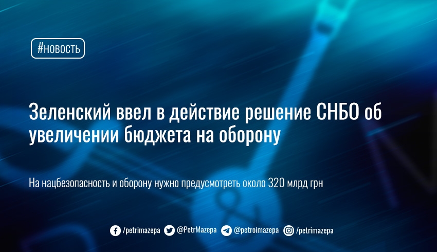 Президент Владимир Зеленский ввел в действие решение Совета национальной безопасности и обороны об увеличении оборонного бюджета.