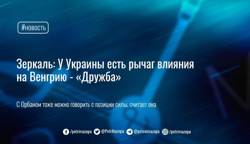 «В руках Украины есть прекрасный рычаг — это нефтепровод "Дружба". Даже если мы очень ценим отношения со Словакией, которая также получает нефть через "Дружбу", в Венгрию идет отдельная нитка. Было бы очень кстати, если бы с ним что-то произошло», — сказала Зеркаль.