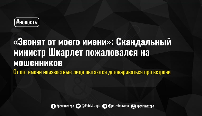 «Звонят от моего имени»: Скандальный министр Шкарлет пожаловался на мошенников