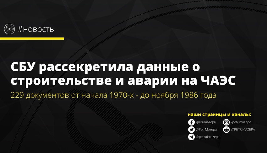 СБУ рассекретила данные о строительстве и аварии на ЧАЭС