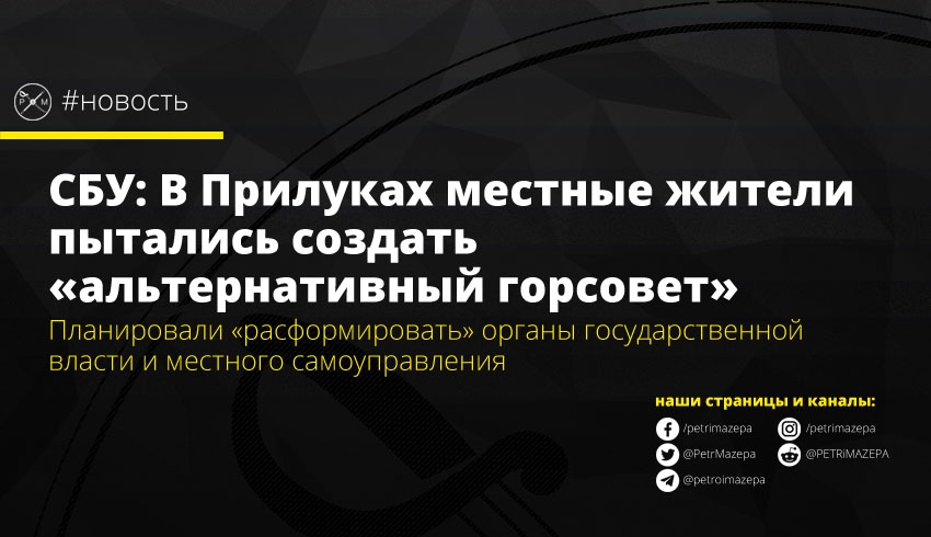Служба безопасности Украины (СБУ) раскрыла организованную группировку, которая пыталась создать «горсовет» в Прилуках, Черниговская область. Создатели незаконного псевдогосударственного формирования, 9 местных жителей, планировали «расформировать» органы государственной власти и местного самоуправления на территории города.