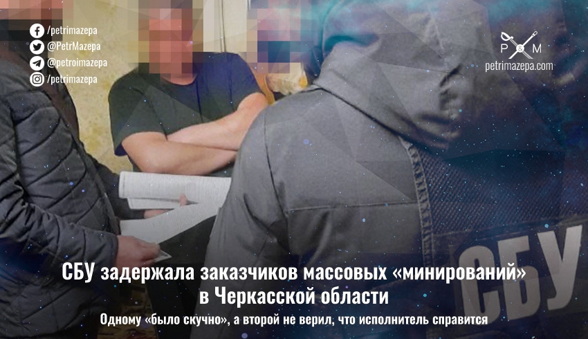 В СБУ сообщили, что установили трех злоумышленников, по заказу которых «минировали» учебные заведения, торговые центры и жилые дома в Черкасской области. Сами псевдо минирования СБУ относит к «проявлениям гибридной агрессии РФ против Украины», поскольку они помогают сеять панику. А заказчиками в этих трех случая были несовершеннолетние жители Черкасской области.
