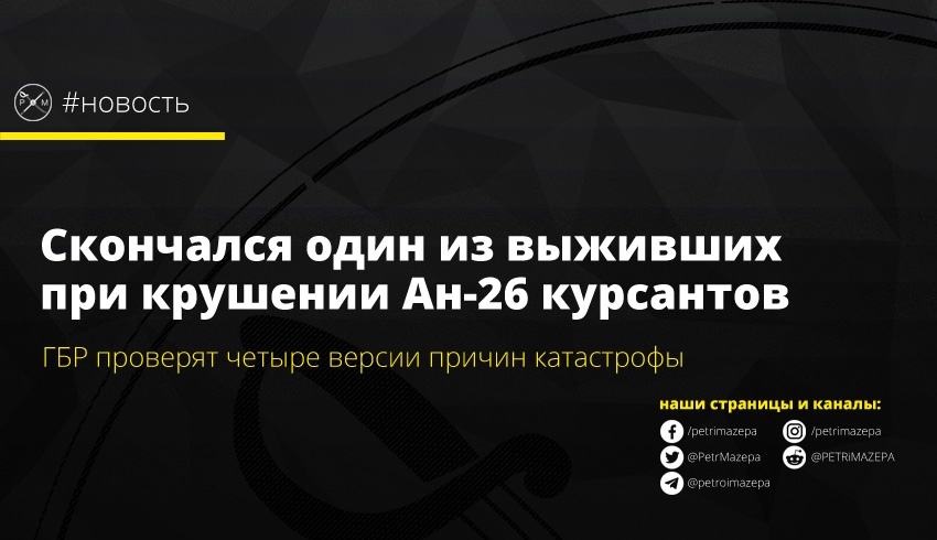 В ГСЧС сообщили, что в больнице сегодня утром умер один из курсантов, выживших при крушении военного Ан-26. А в ГБР сейчас проверяют четыре версии причин произошедшей трагедии.