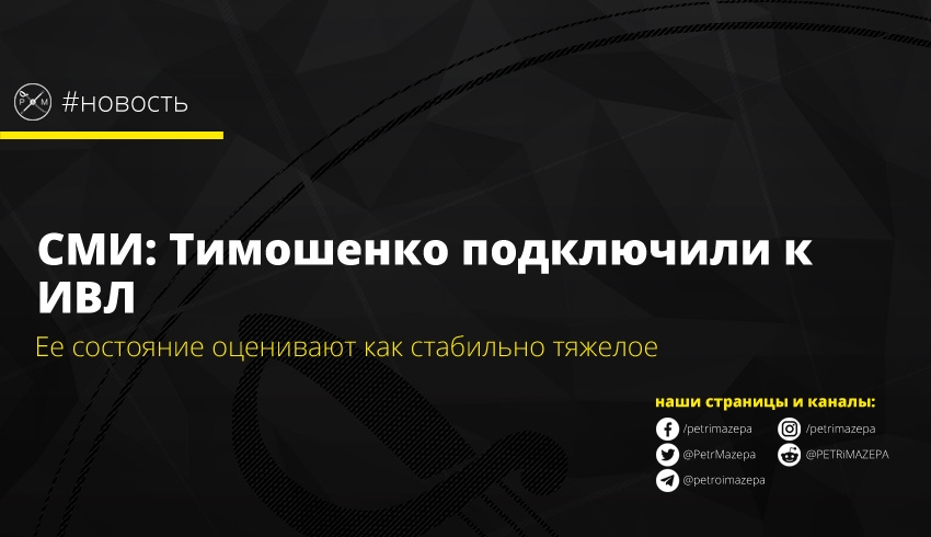 Состояние лидера партии «Батькивщина» Юлии Тимошенко, которая заболела коронавирусом, оценивается как стабильно тяжелое. Ее подключили к аппарату искусственной вентиляции легких (ИВЛ).