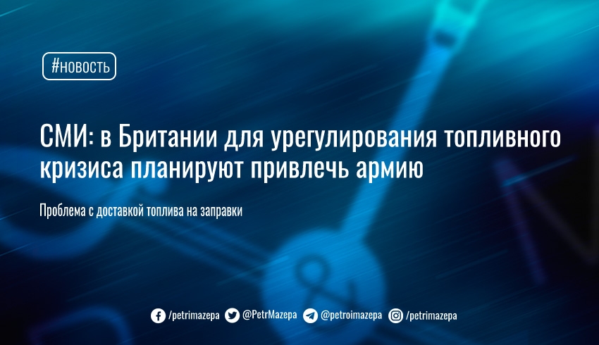 Несколько дней подряд на АЗС наблюдаются большие очереди и паническая скупка горючего. Проблема возникла из-за нехватки водителей, которые доставляли топливо с крупных терминалов. На фоне ситуации, которая сложилась, правительство Великобритании рассматривает возможность использования армии для помощи в поставках топлива.