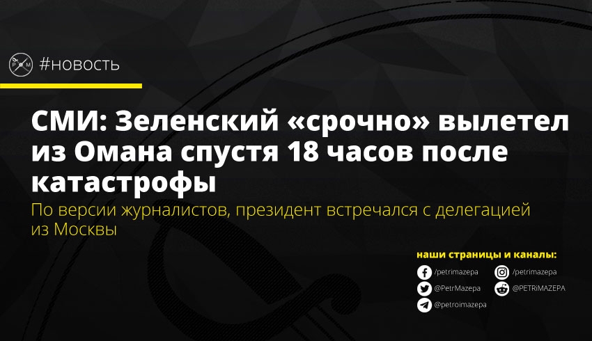 СМИ: Зеленский «срочно» вылетел из Омана спустя 18 часов после катастрофы