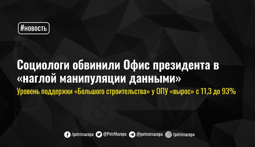 Фонд «Демократические инициативы» им. Илька Кучерива выпустил официальное заявление в котором обвинил Офис президента Украины в наглом манипулировании данными опроса, проведенного Фондом совместно с КМИС. В ОПУ заявили, что президентскую инициативу «Большое строительство» считают главным позитивным событием года 93% респондентов, хотя по данным опроса эту инициативу вообще отметили 11,3%, и только 93% этих людей считают ее позитивным событием.