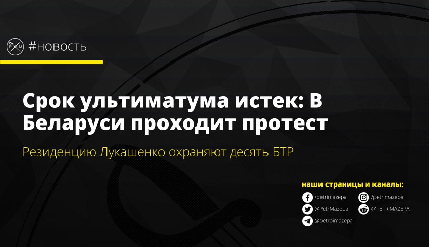 В Беларуси проходят массовые протесты на фоне истечения срока "Народного ультиматума", объявленного Тихановской. Люди собираются в Минске, Лиде, Гомеле, Бресте, Могилеве, Витебске и других городах. Большая колонна движется к центру Минска. С самого утра в столице Беларуси были замечены микроавтобусы с силовиками, военная техника, а резиденцию Лукашенко охраняет десять БТР.