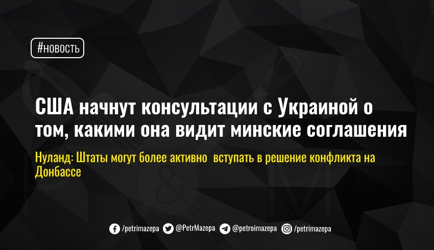 В интервью «Радио Свобода» Нуланд заявила, что в скором времени начнутся «серьезные консультации с украинскими партнерами о том, как они видят Минские соглашения и как они будут двигаться к их реализации». После этого США посмотрят есть ли потенциальные основания быть задействованными.
