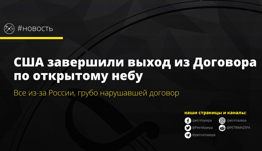 США окончательно вышли из Договора по открытому небу, который грубо нарушался страной-агрессором.