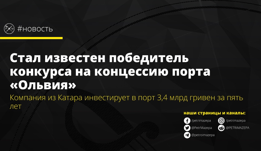 В конкурсе на концессию порта «Ольвия» в Николаеве победила компания из Катара QTerminals. Общие инвестиционные обязательства на пять лет составляют 3,4 млрд гривен.