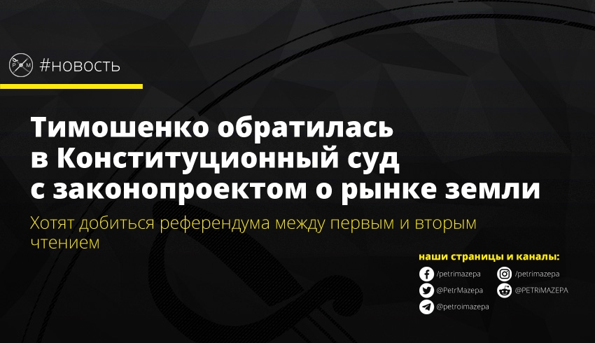 Лидер политической партии «Батьківщина» Юлия Тимошенко сообщила, что обратилась в Конституционный суд Украины (КСУ) с просьбой безотлагательно рассмотреть представление «Батькивщины» по законопроекту о рынке земли.
