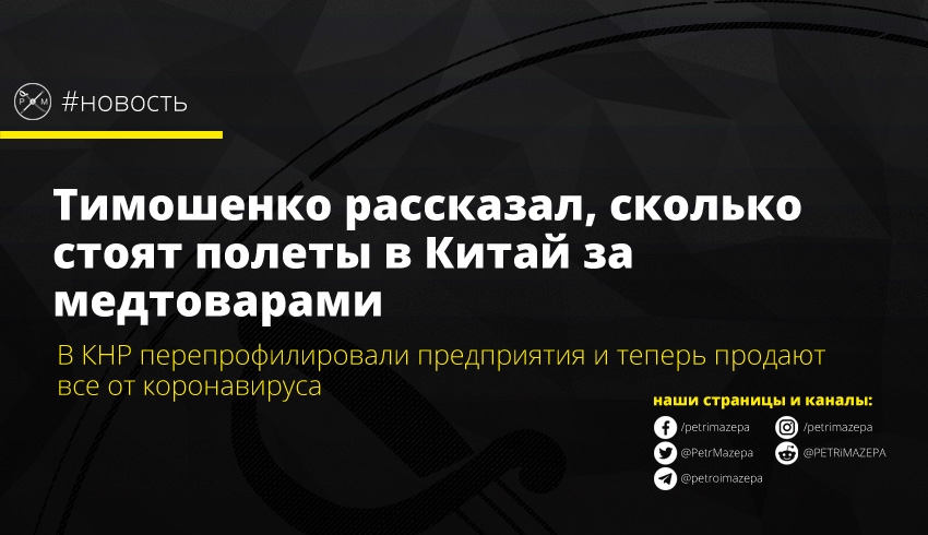 В Китае же Украина и украинский бизнес закупают сейчас все от респираторов до полных костюмов защиты. «Они (Китай – прим.ред.) это прошли, они перепрофилировали свои предприятия и выпускают все необходимое. Все маски, которые были раньше у нас на рынке, это все был Китай», - сообщил Тимошенко.