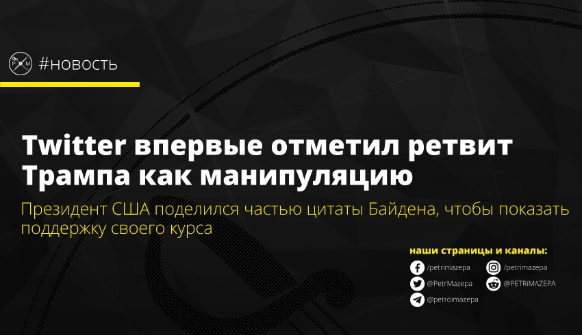 Ретвит президента США Дональда Трампа с видео выступления кандидата в президенты от демократов Джо Байдена был впервые промаркирован соцсетью как «манипуляция СМИ».