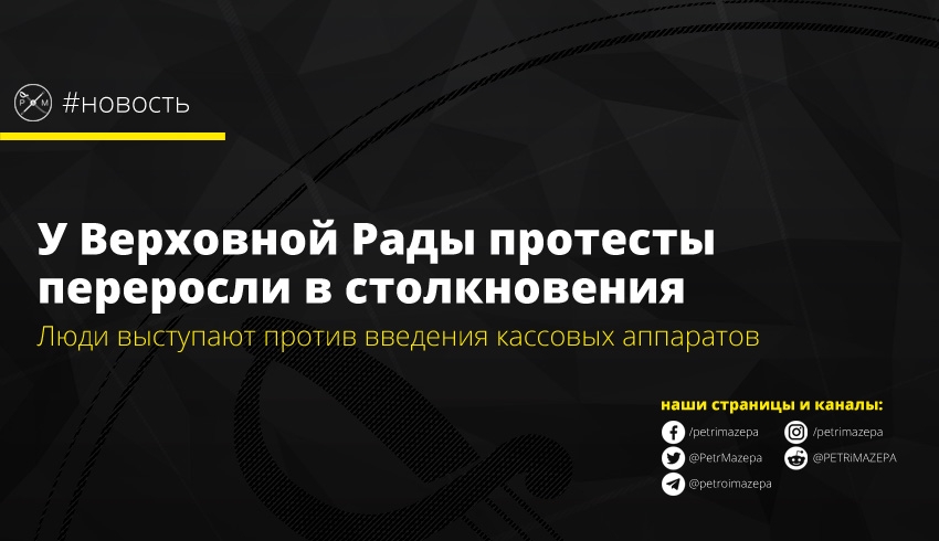 В Киеве под зданием парламента сегодня проходит масштабный протест предпринимателей, выступающих против введения кассовых аппаратов. В ходе акции произошли столкновения правоохранителей с протестующими.