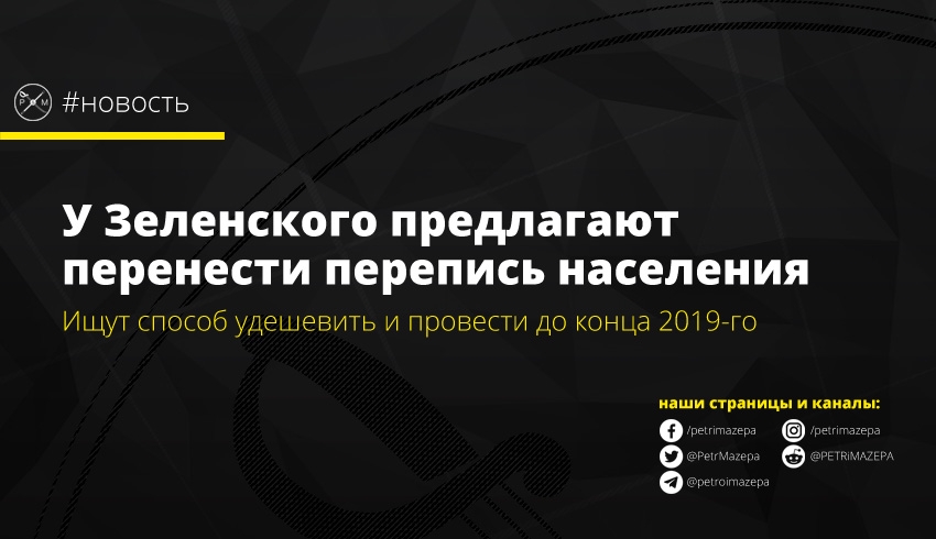 По словам Стефанчука Кабинет министров и Государственная служба статистики запланировали на 2020 год проведение переписи населения. Для реализации запланированного нужно порядка 4 млрд грн, передает «РБК-Україна». Но в команде Зеленского ищут альтернативный вариант, который обойдется стране дешевле и позволит провести перепись уже к концу 2019-го. «Планировалось закупить планшеты, потом их передать в школы и т.д. Мы сейчас ищем оптимальный вариант, как удешевить и до конца этого года провести перепись населения. Вместо планшетов мы предлагаем провести перепись все же в бумажном варианте», - отметил представитель Зеленского.