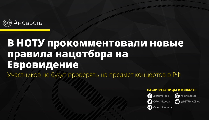 Участников национального отбора на Евровидение-2020 от Украины не будут проверять на предмет выступлений на территории страны-агрессора. По словам главы правления Национальной общественной телерадиокомпании Украины (НОТУ), участник или коллектив предварительно должен понимать, на что он соглашается и это уже его ответственность в случае обмана НОТУ.