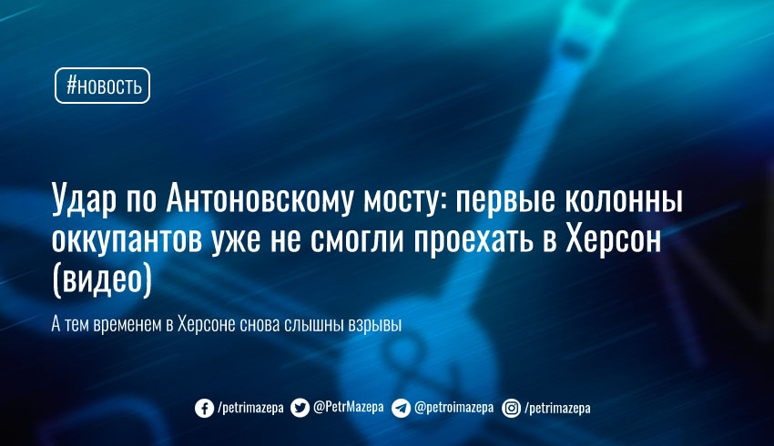Телеканал министерства «обороны» РФ «Звезда» заявил, что военные колонны оккупантов не смогли попасть в Херсон — их не пропустили через Антоновский мост, который после прилетов был закрыт оккупационными властями.
