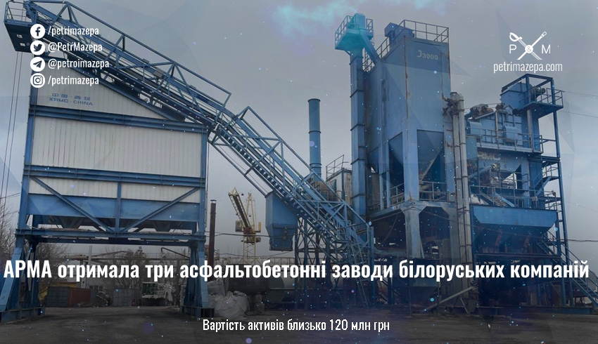 АРМА отримала три асфальтобетонні заводи білоруських компаній