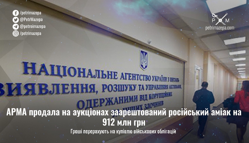 Агентство з розшуку та менеджменту активів (АРМА) продало на трьох відкритих аукціонах арештований аміак російських компаній на 912 млн грн.