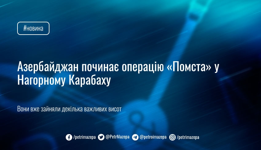 Міністерство оборони Азербайджану заявило про початок операції «Помста» в Нагорному Карабаху — вони взяли під контроль кілька важливих висот і вже займаються обладнанням нових позицій.