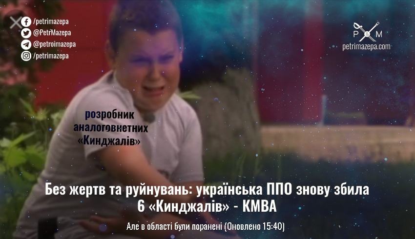 В Київській міській військовій адміністрації повідомили про попередні наслідки обстрілу. Наші захисники знову знищили 6 аналоговнетних «Кинджалів». І інформація щодо жертв чи руйнувань наразі не надходила.