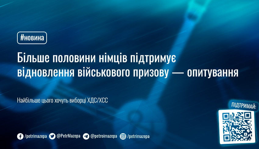Більшість громадян Німеччини підтримують відновлення призову до війська. Такими є результати опитування соціологічного інституту Forsa, проведеного на замовлення журналу Stern і телекомпанії RTL.
