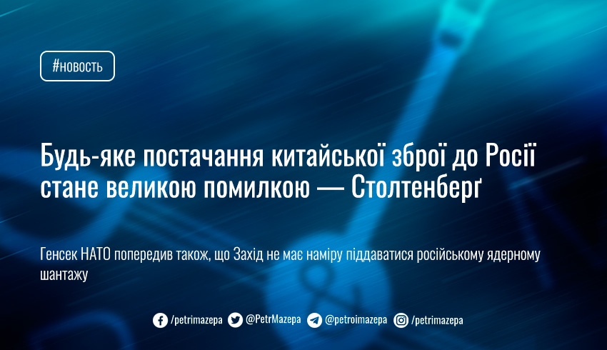 Будь-яке постачання китайської зброї до Росії стане великою помилкою — Столтенберґ