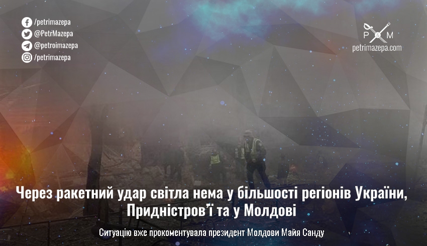 Через ракетний удар світла нема у більшості регіонів України, Придністров’ї та у Молдові