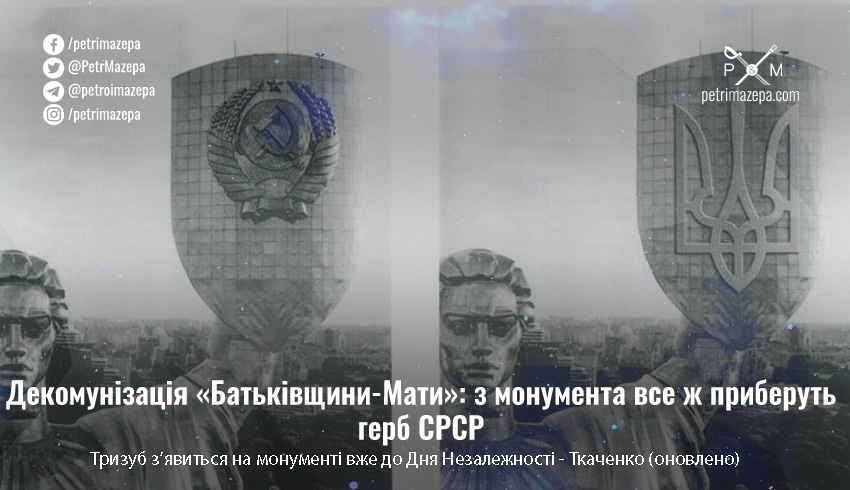 «Проєктними рішеннями передбачається влаштування Тризуба на щиті монумента, який відповідає зображенню на малому Державному Гербі України. Тризуб замінить старий радянський герб», — повідомляє Міністерство розвитку громад, територій та інфраструктури України. Щоправда, там не називають ніякі терміни завершення робіт чи хоча б їх початку — «очікується, що роботи стартують у найближчому майбутньому».