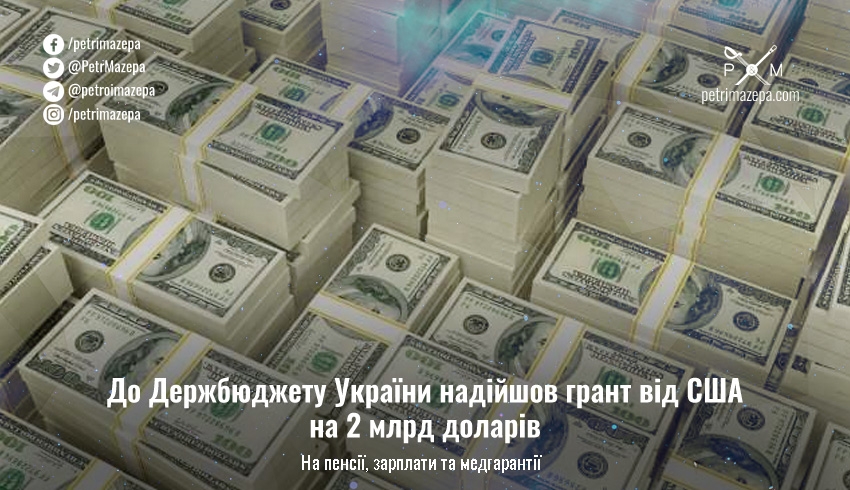 До Держбюджету України надійшов грант від США на 2 млрд доларів