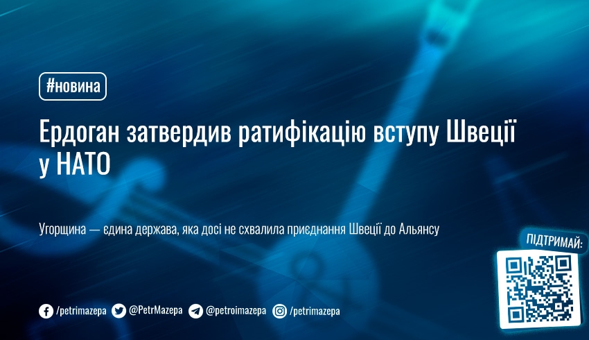 Президент Туреччини Реджеп Ердоган офіційно затвердив ратифікацію вступу Швеції у НАТО.