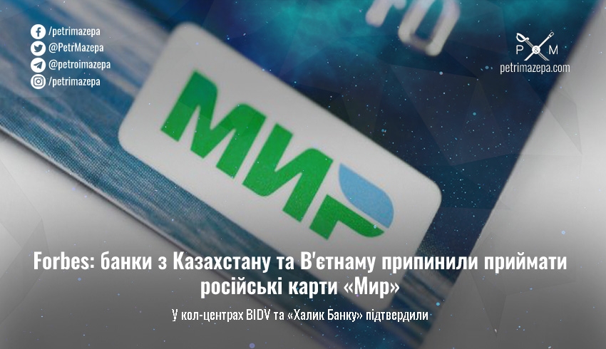 Forbes: банки з Казахстану та В'єтнаму припинили приймати російські карти «Мир»