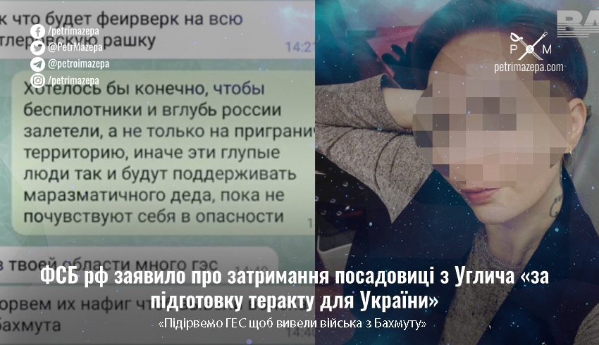 ФСБ росії відзначилось новим затриманням «агента України» — тепер ним стала співробітниця адміністрації Углича, Ярославська область, яка нібито на завдання СБУ готувала підрив греблі місцевої ГЕС, щоб росія «вивела війська з Бахмуту».