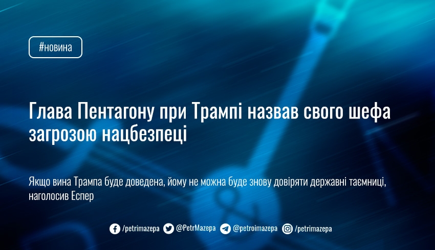 Якщо вина Трампа буде доведена, йому не можна буде знову довірити державні таємниці (у разі обрання президентом), наголосив Еспер.