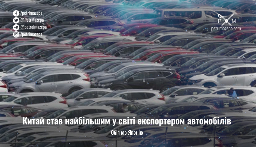Минулого року Китай випередив Німеччину і став другим найбільшим експортером автомобілів у світі. Експорт Китаю збільшився завдяки попиту на електромобілі та продажам до Росії після того, як країну-агресора залишили провідні світові автовиробники.