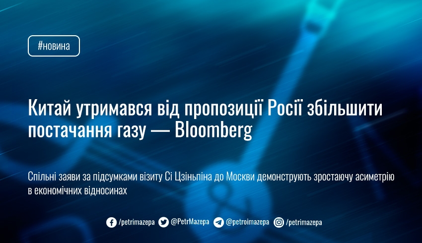 Китай утримався від пропозиції Росії збільшити постачання газу — Bloomberg