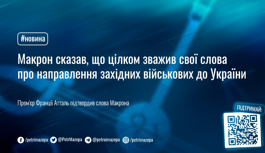 Президент Франції Ємманюель Макрон сказав, що раніше цілком усвідомлено говорив про можливість направлення західних військових до України.
