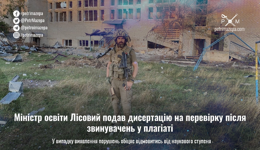 Новий міністр освіти Оксен Лісовий подав на перевірку до Національного агентства із забезпечення якості вищої освіти власну дисертацію після звинувачень у плагіаті. Висновок він пообіцяв оприлюднити публічно, а від ступеня кандидата наук у випадку порушень — відмовитись.