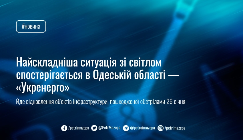 Найскладніша ситуація зі світлом спостерігається в Одеській області — «Укренерго»