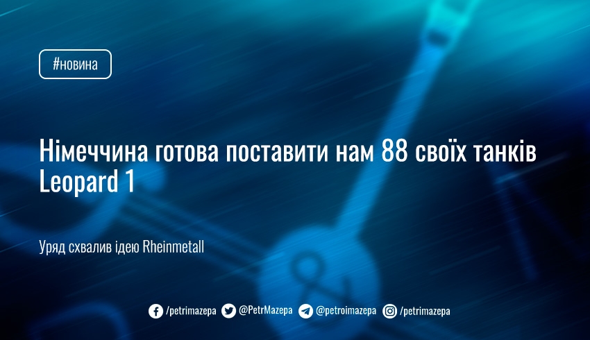 Кабінет канцлера Олафа Шольца схвалила плани німецького виробника зброї Rheinmetall продати Києву десятки старих Leopard після їх ремонту на загальну суму понад 100 млн євро. Однак можуть виникнути проблеми з боєприпасами до старих танків Leopard 1, оскільки вони більше не виробляються, а калібри їх снарядів відрізняються від нових Leopard 2.