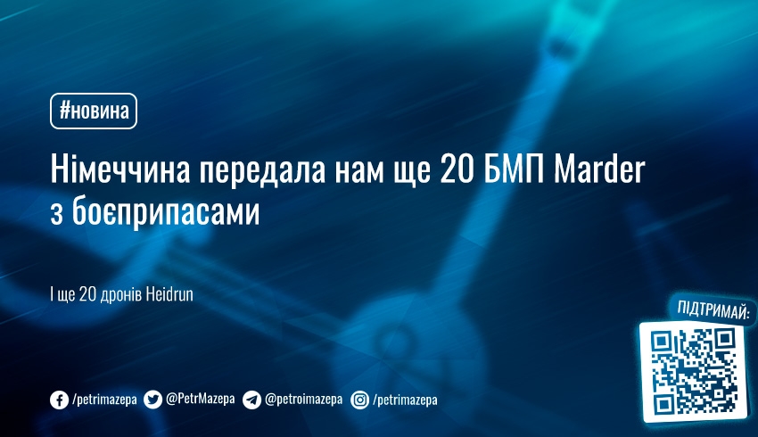 - 20 БМП Marder з боєприпасами (раніше поставлено 40 БМП);