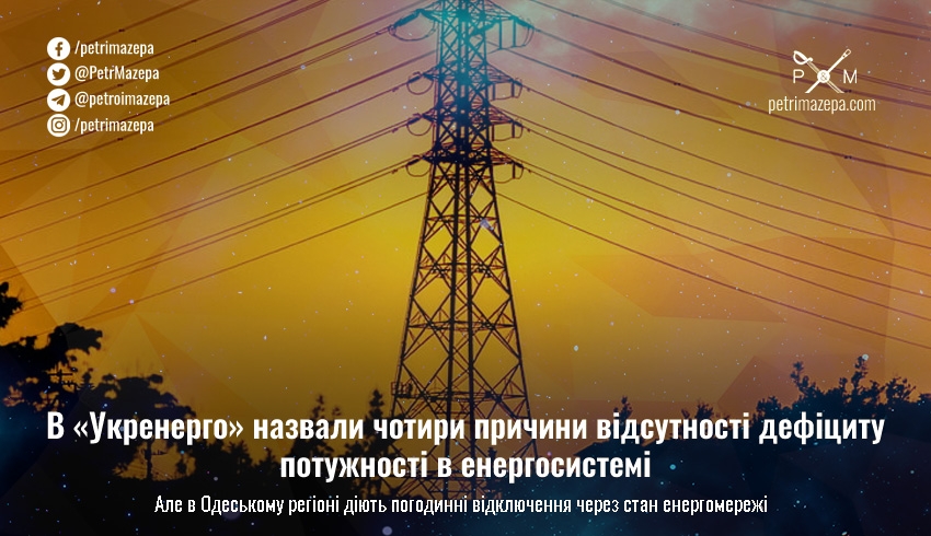 Але «через пошкоджену мережеву інфраструктуру в Одесі діють графіки погодинних відключень». Не виключено, що відключення будуть й у Київській, Хмельницькій, Житомирській областях та у м. Київ. Причина — при зростанні споживання зростає й ризик перевантаження обладнання, тому для його зменшення оператори можуть повертатися до графіка погодинних відключень.