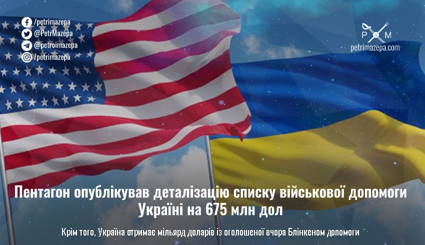 Пентагон опублікував деталізацію списку військової допомоги Україні на 675 млн дол