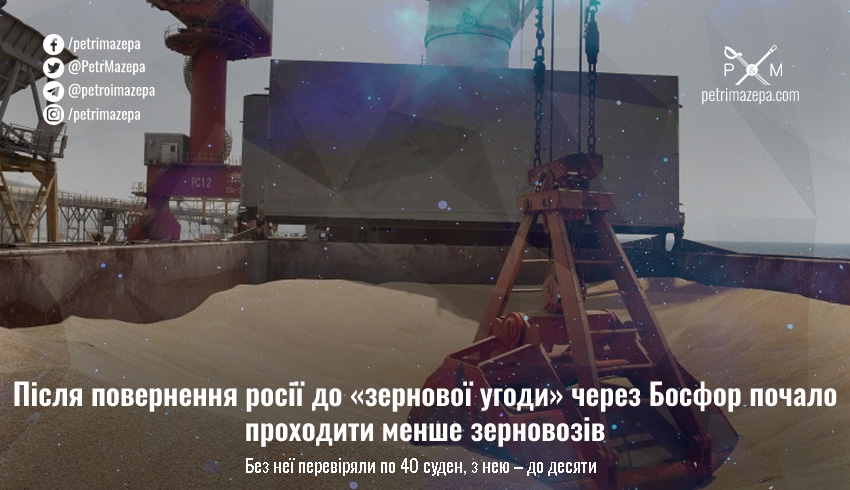 Після повернення росії до «зернової угоди» через Босфор почало проходити менше зерновозів