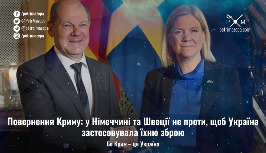 Глави урядів ФРН Олаф Шольц і Швеції Магдалена Андерссон нагадали, що Україна має право використовувати зброю від західних партнерів для захисту своєї територіальної цілісності. А оскільки Крим — це Україна, то для його визволення також.