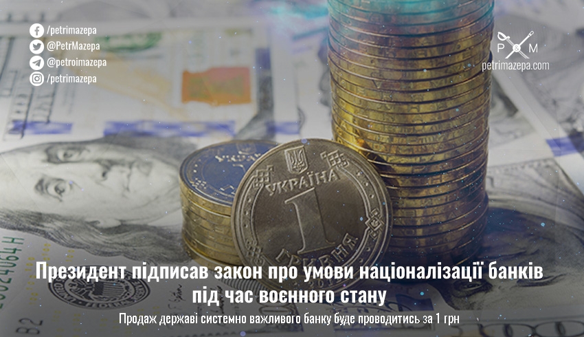 Президент підписав закон про умови націоналізації банків під час воєнного стану