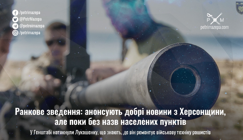 Ранкове зведення: анонсують добрі новини з Херсонщини, але поки без назв населених пунктів