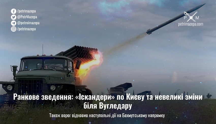 Ранкове зведення: «Іскандери» по Києву та невеликі зміни біля Вугледару