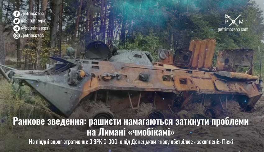 Ранкове зведення: рашисти намагаються заткнути проблеми на Лимані «чмобіками»